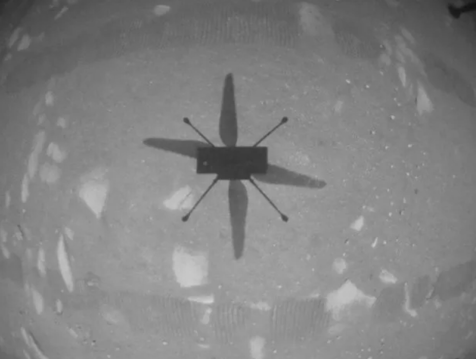 Engineers at Nasa's Jet Propulsion Laboratory restored contact with Ingenuity the next day, and imagery taken days later showed damage to one of its carbon fibre rotorblades, the space agency said. An image released by Nasa that was taken by Ingenuity's onboard camera captured the aircraft's shadow on the Martian surface, appearing to show one of its rotorblades broken.